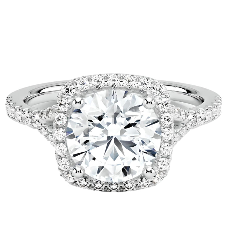 Diseño que deslumbra: El centro del anillo está adornado con una impresionante moissanita de corte redondo, reconocida por su brillo que supera incluso al del diamante. Rodeada por un halo de piedras laterales, cada una engastada con precisión en un montaje de cuatro garras, esta joya refleja la luz desde todos los ángulos, creando un destello que dejará una impresión duradera.