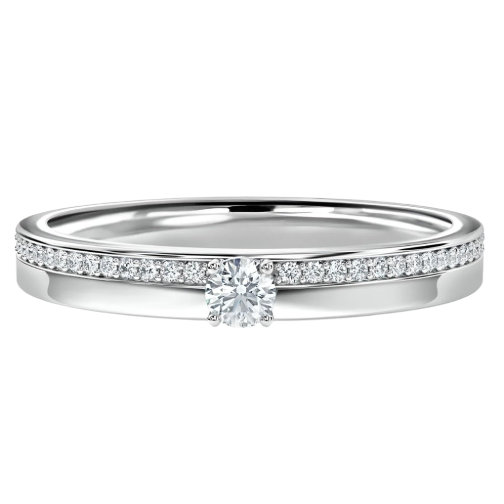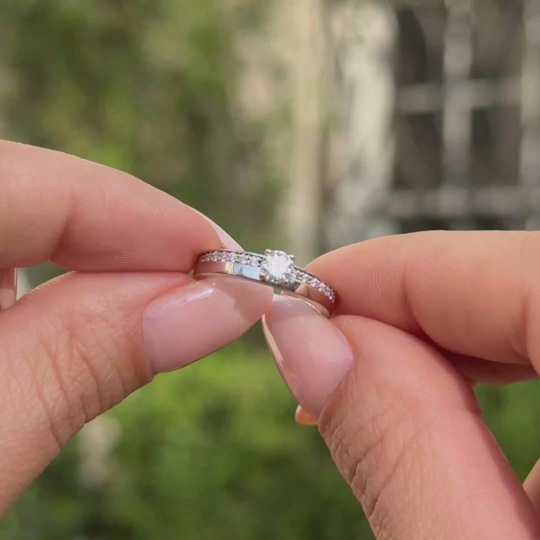 - Piedras Laterales: Moissanitas de 1.3 mm, alineadas delicadamente en el aro