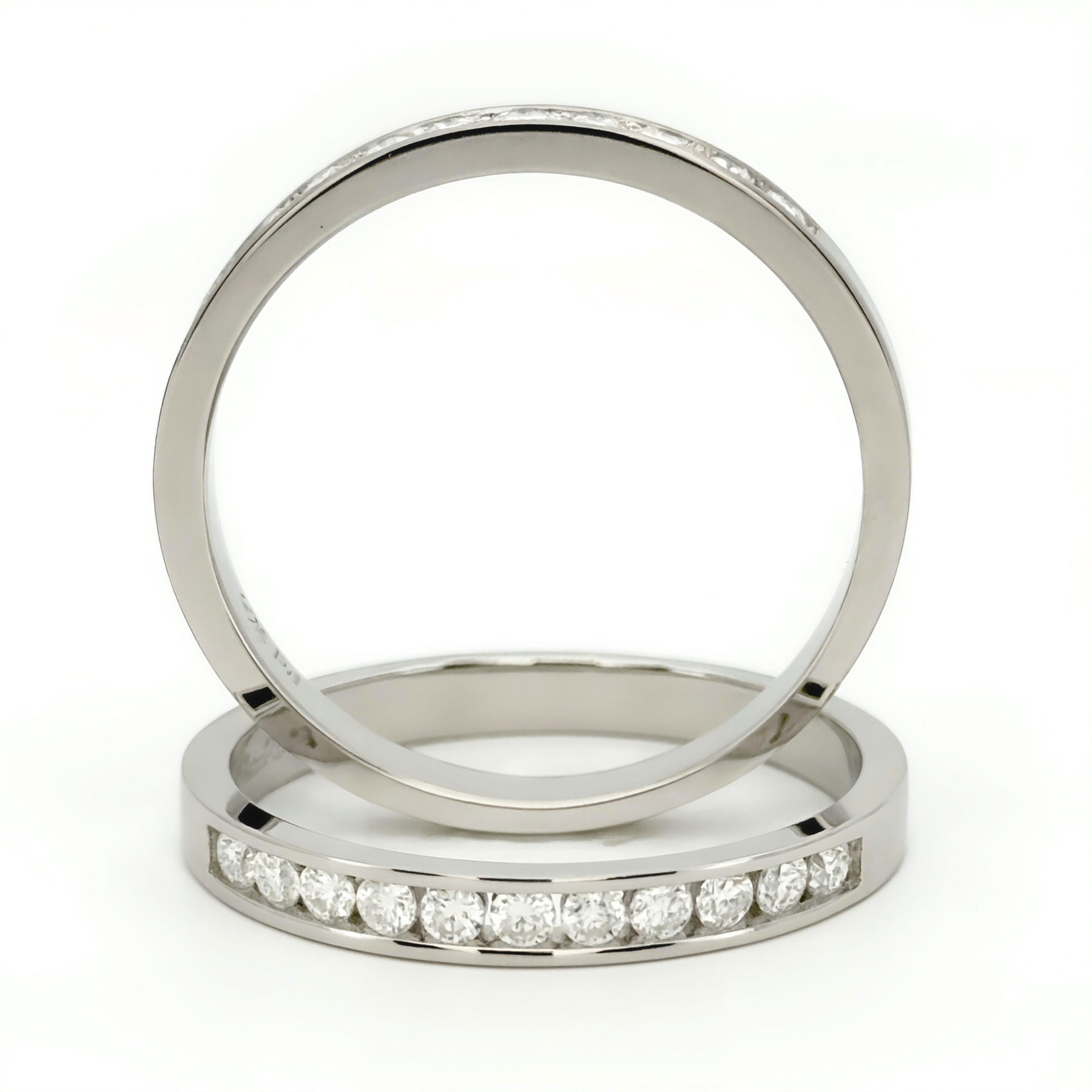El anillo de compromiso BOOMZAIR "ESTILO MEDIO CINTILLO" combina la elegancia discreta con un brillo atemporal. Este diseño presenta moissanitas de corte redondo en calidad D VVS1 de 1.8mm, cuidadosamente alineadas a lo largo de la banda en un estilo medio cintillo, reflejando la luz con una brillantez comparable al diamante. Ideal para quienes buscan un estilo refinado y minimalista.