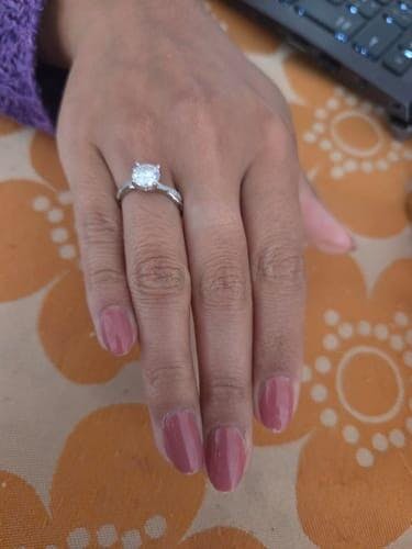 - Piedra Principal y Laterales: Moissanita Redonda de corte excelente