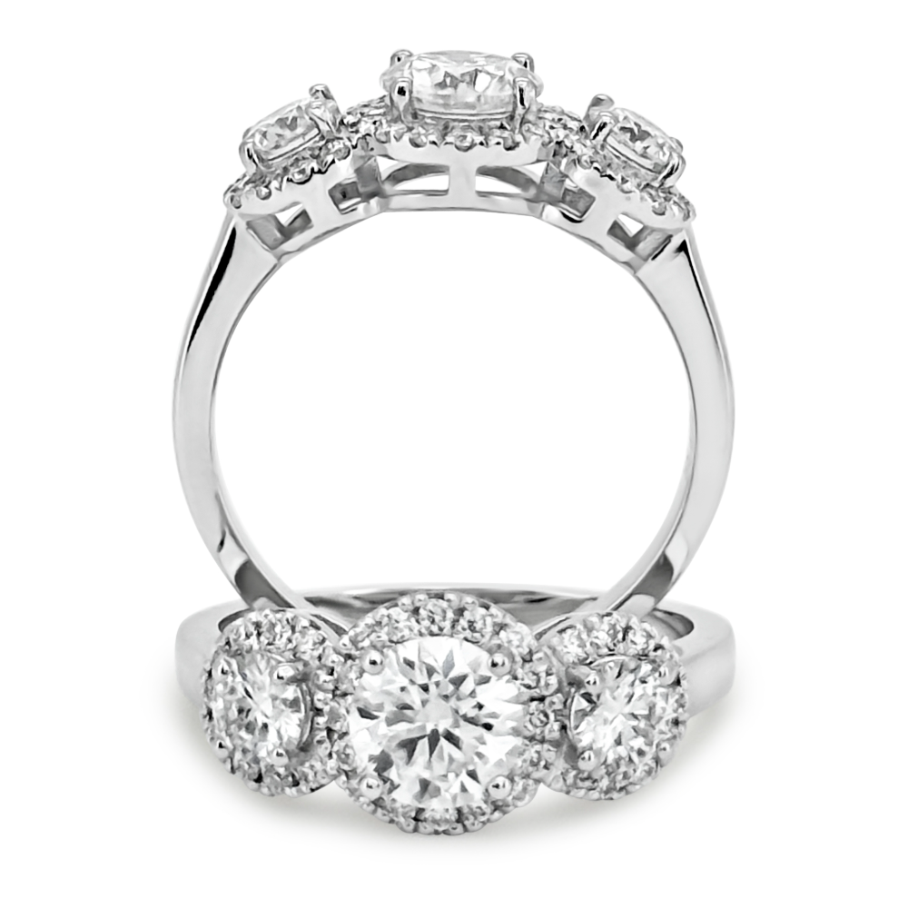 El “Halo Trinity” es una declaración de amor eterno y estilo inconfundible. Diseñado para quienes no temen brillar y desean un anillo que cuente una historia en cada destello.