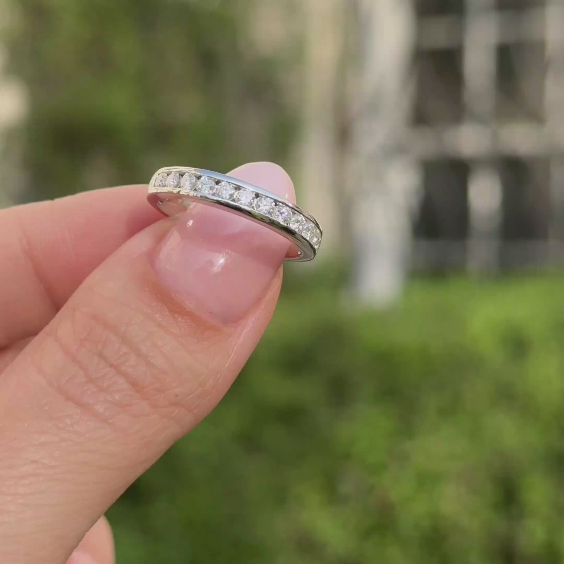 El anillo de compromiso BOOMZAIR "ESTILO MEDIO CINTILLO" combina la elegancia discreta con un brillo atemporal. Este diseño presenta moissanitas de corte redondo en calidad D VVS1, cuidadosamente alineadas a lo largo de la banda en un estilo medio cintillo, reflejando la luz con una brillantez comparable al diamante. Ideal para quienes buscan un estilo refinado y minimalista.